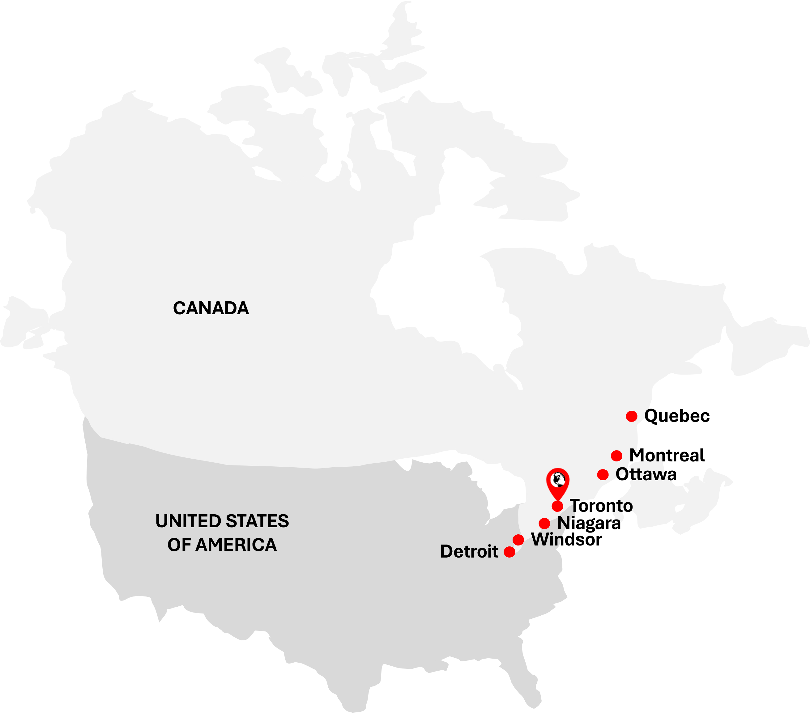 Where: Toronto, Montreal, Ottawa, Windsor, Quebec, Wendake, Niagara, Canada. Detroit, Unites States of America. North America.